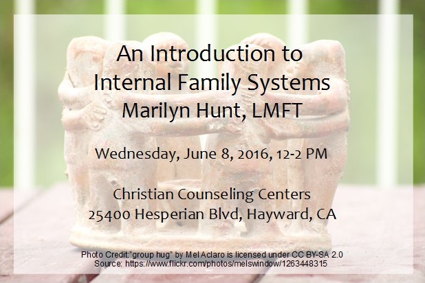In June, the Trauma Training Program at Christian Counseling Centers in Hayward will be offering “An Introduction to Internal Family Systems” led by Marilyn Hunt, LMFT. The workshop is for counselors and others who minister to trauma survivors.